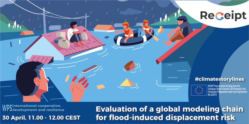 In this first webinar ‘Evaluation of a global modeling chain for flood-induced displacement risk’, we have looked at RECEIPT’s work on flood modeling and displacement. The webinar was recorded and can be viewed below: